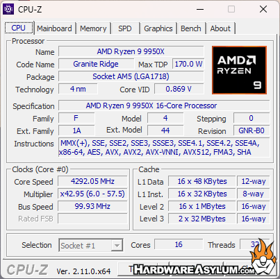 AMD Ryzen 9 9950X (4.3Ghz) Sixteen Core 16 x 1MB L2 Cache 2 x 32MB L3 Cache