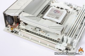 The primary drive location is positioned above the chipset and covered by an EZ latch M.2 heatsink allowing you to simply push the metal clip to release the heatsink and access the drive. Sadly, there is only one thermal pad with the area under the drive being completely open.