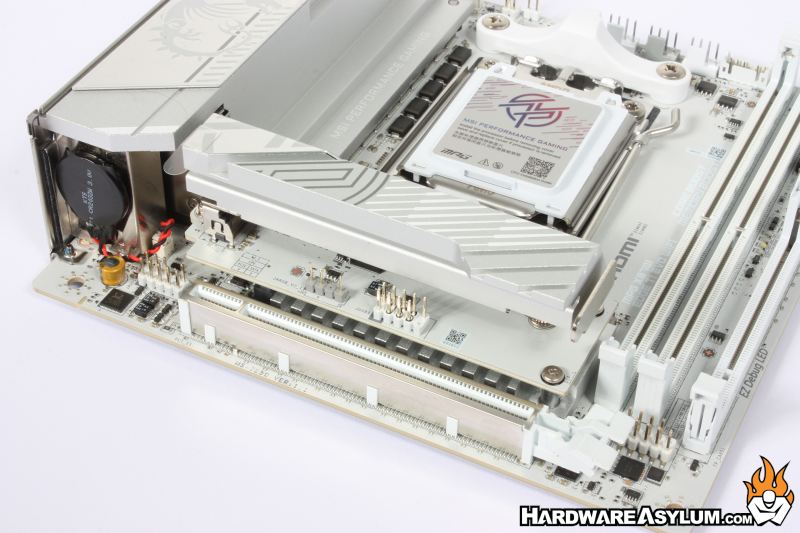 The strange looking expansion slot next to the memory slots is the 5 in 1 Xpander Card interface and is how the MSI MPG X870i Edge Ti Evo is able to provide so much connectivity.
