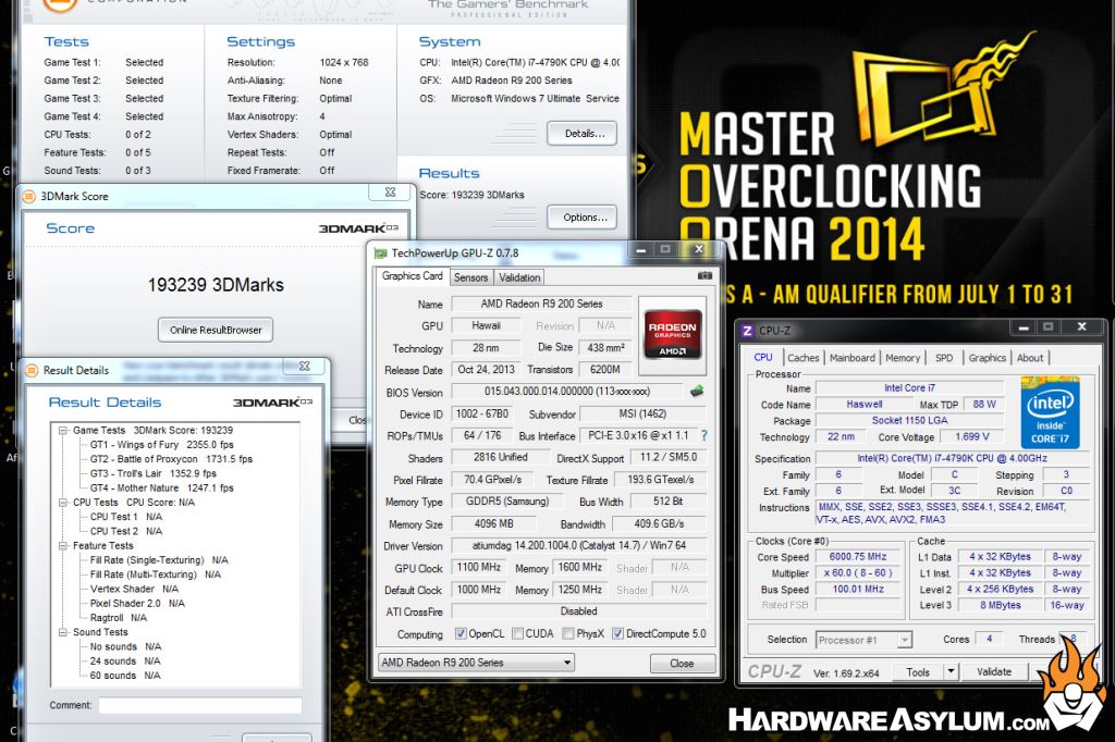 We did have some fun with the Core i7 4790K and decided to see just how fast it would run and are happy to report that our chip hit 6.1Ghz running 2D benchmarks and would run 3D benches all day at 6Ghz. Of course that is mostly the quality of the silicon but wouldn't be possible without a proper motherboard.