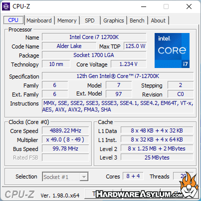 Intel Core i7 12700k (3.2Ghz) Sixteen Core 12+12 32KB L2 Cache 9+9 x 1.25MB L3 Cache 25MB