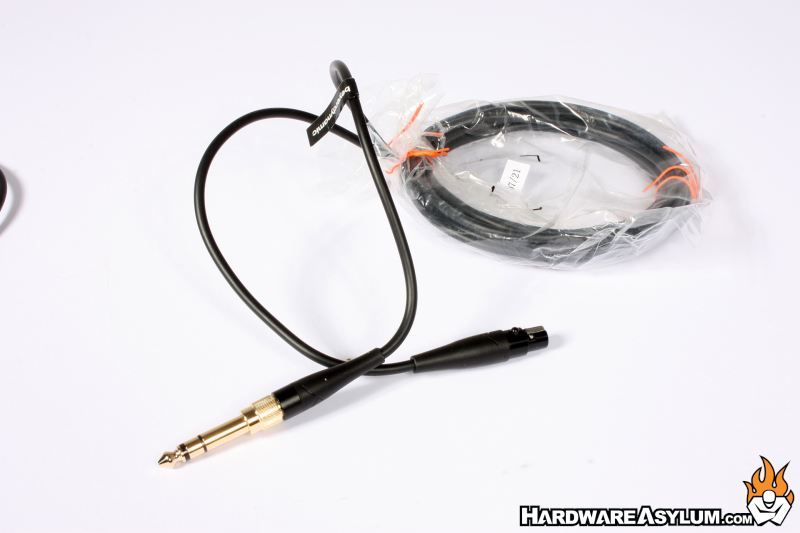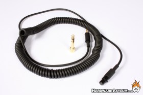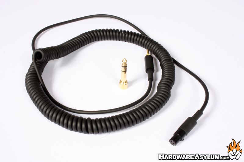 Also included are two cables. Both a straight cable (3m) and a coiled cable (5m) are included. Each are secured to the by a lockable 3-pin mini-XLR plug. You also get a 6.35 mm (1/4") stereo jack plug adapter.